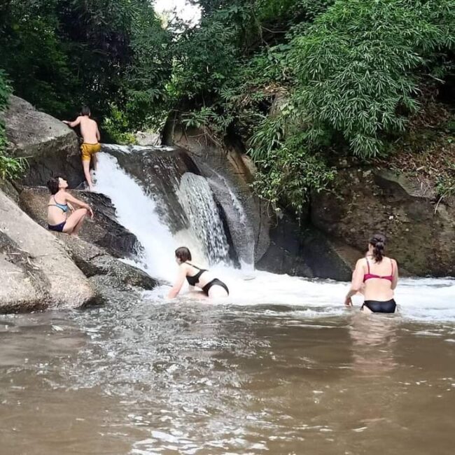 After lunch take a short drive 40 mins, to visit a sticky waterfall, we spent about an hour enjoying the view, playing and walking up and down with barefoot. After that Drive back to Chiang Mai, arriving around 5:00 pm. For your information, we will not force them to do things against their will. We will let them be in their true nature, which will make them happy, because this is their sanctuary